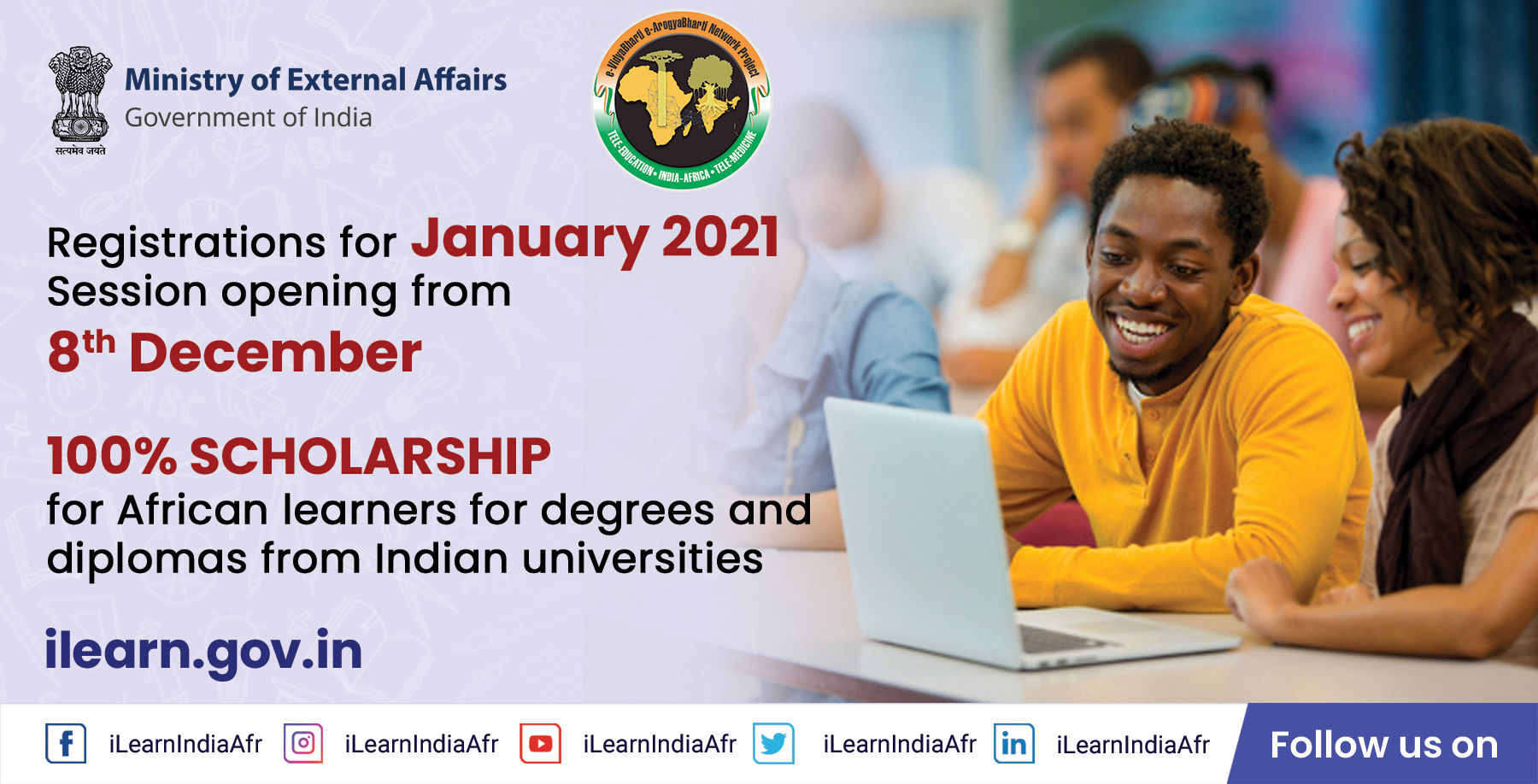Commencement of enrolment in Graduate, Diploma and Certificate Programmes for students of Africa from 8th December 2020 under e-VidyaBharti and e-ArogyaBharti (e-VBAB) Project.