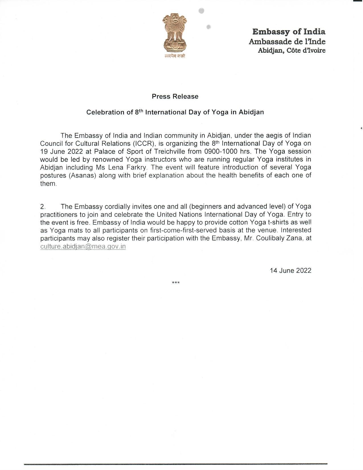 Celebration of 8th International Day of Yoga - 2022
